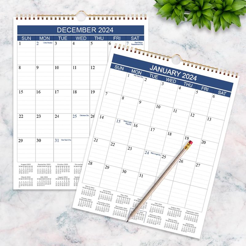This yealy calendar 2024 with golden strong twin-wire binding, makes it easy for turning pages and enables this 14 months wall calendar to hang on the wall steadily. Monthly wall calendar with thick premium paper to prevent ink bleed-through. 2024 calendar is a great tool to make your life efficient. It works great as a home calendar, office calendar 2024, or school year calendar for students. Birthday reminder page on the back side to remind you important dates.