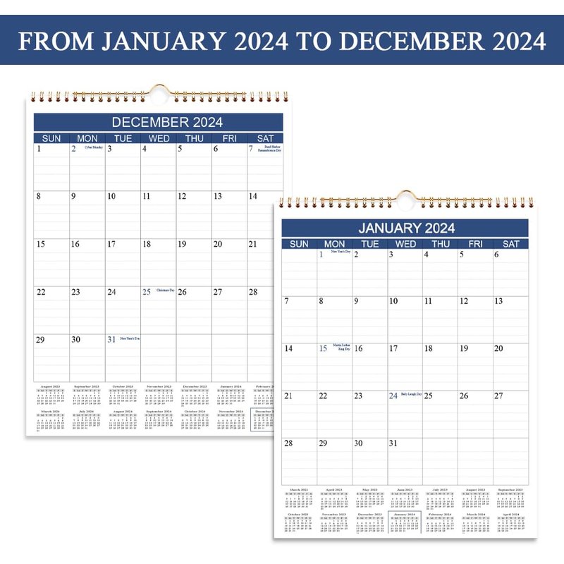 - PREMIUM QUALITY - Calendars 2024 wall with golden strong twin-wire binding makes it easy for turning pages and enables this 12 months wall calendar to hang on the wall steadily. Monthly wall calendar with thick premium paper to prevent ink bleed-through. Calendar 2024 is a great tool to make your life efficient