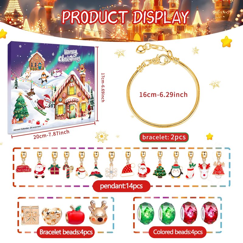 2024 Christmas Advent Countdown Calendar,Charm Bracelet DIY Making Kit 24 Days Surprise Gifts,Jewelry Making Supplies Beads for Teen Girls 4-12,Craft Toys Gifts Set with a Gift Box Gift