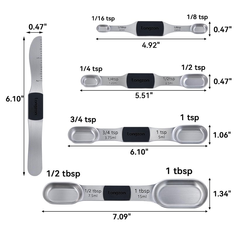 [2024 NEW] longzon 8 Full-Sized Measurements Magnetic Measuring Spoon Set with Leveler - Durable Engraved Markings, Magnetic Absorbent, Stackable Stainless Steel - Suitable for Most Spice Jars