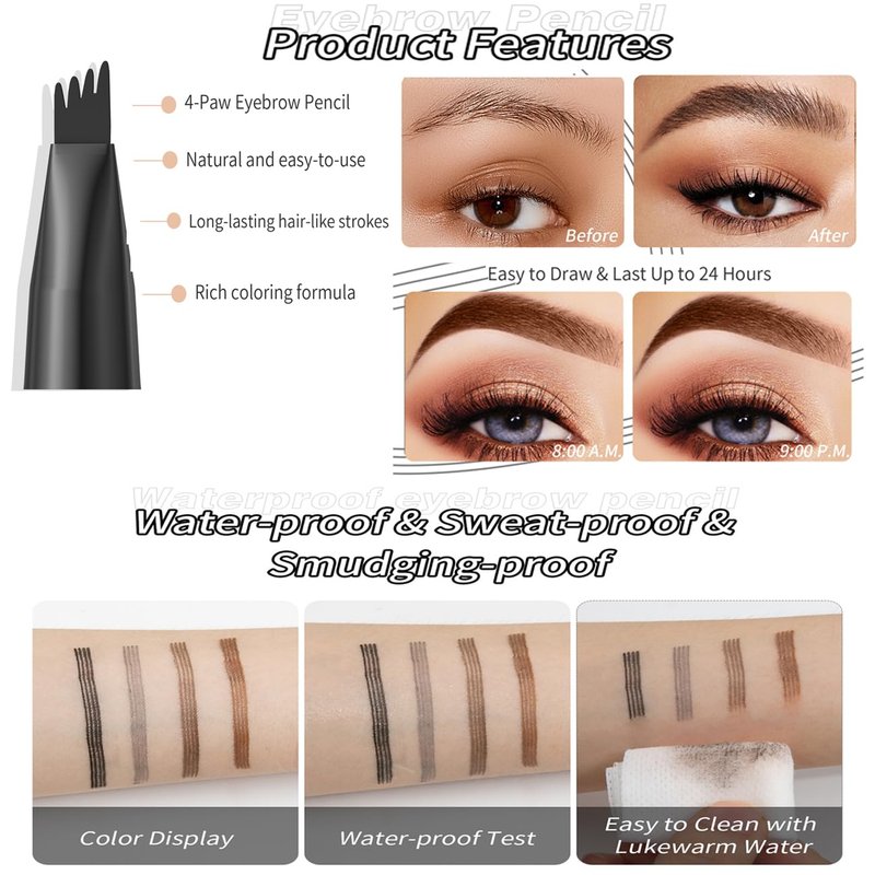 - Unique Design:The magic eyebrow pencil easy to carry .waterproof and sweatproof, not easy to fall off,24 hours of long-lasting non-removal of makeup,The eyebrow pencil features a four-pronged tip with a slim and Its 3D fork design allows for precise .It allows you to draw vibrant and natural-looking eyebrows quickly.makeup beautiful and moving.
