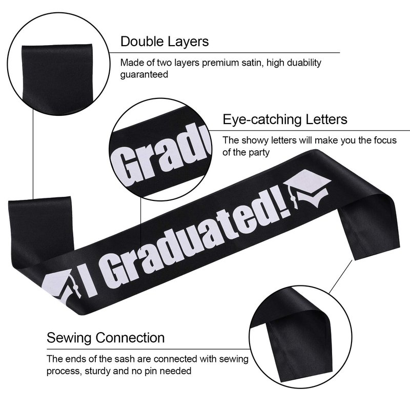 - Easy to use: this graduation party supplies kit comes in different size, unisex style cute and durable, both ends of this graduate sash are stitched together for easy wearing, no pin needed, for younger children, you can use a couple of safety pins to adjust it