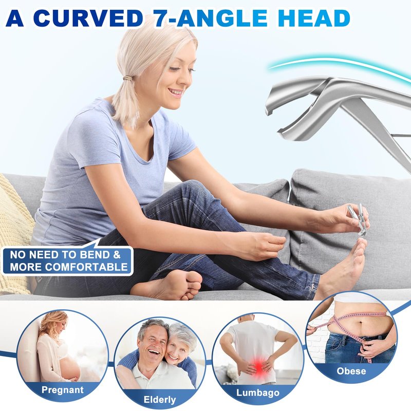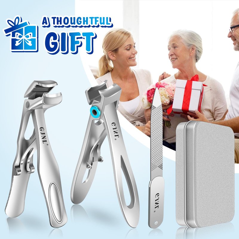 - 🎁【What You Get】The Toenail clipper set includes a wide jaw opening nail clipper, an angled head toenail clipper, a nail file and a Box. This nail clippers set is perfect for all generation people , pregnant and people who has low back pain or arthritis in your hands. If you have any questions about the toe nail clipper set, please feel free to contact us, we will reply you within 24 hours and promised to replace or refund defective products.