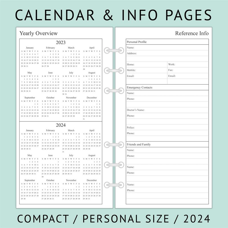 - Compatible with 6-ring A6 planner binders, such as Filofax personal, AT-A-GLANCE portable size 3, Franklin Covey compact size