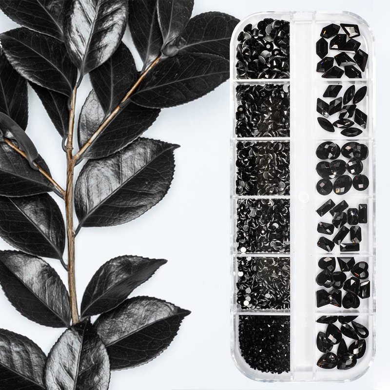- ❤【1 Boxes 12 Grids Crystal Black Nail Rhinestones + Stainless Steel Tweezer + Pickup Pen】Total 2052pcs sparkling jet black rhinestones nail crystals. Including 72pcs multi-shaped crystal rhinestones, 1980pcs multi-sized round crystal gem rhinestones. Enough amounts and more shape options for your daily work, go out or other decoration purposes. Comes with 1 Stainless Steel Tweezer and Pickup Pen for Nail Manicure DIY Decoration at Home Salon Supplies.