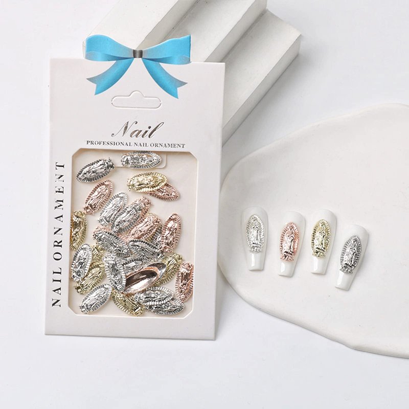- ⚜️【Unique Embossed Design】Virgin Mary Nail Charm Decoration is a unique and exquisite nail decoration. This product features a 3D embossed design, which creates a multi-layered sense of depth on each nail, making your nails more eye-catching and glamorous. Each package contains 20 nail charms, allowing you to create a variety of different styles.
