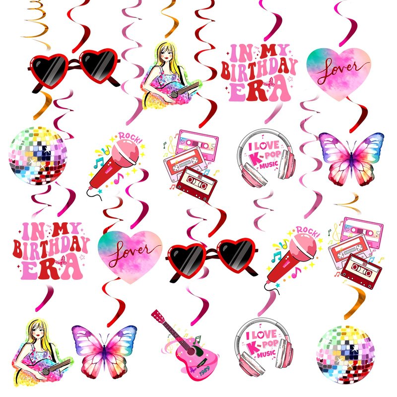20pcs Birthday Party Decorations Singer Theme Party Supplies Hanging Swirls for Girls Birthday Decorations