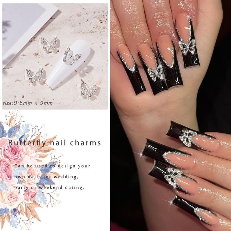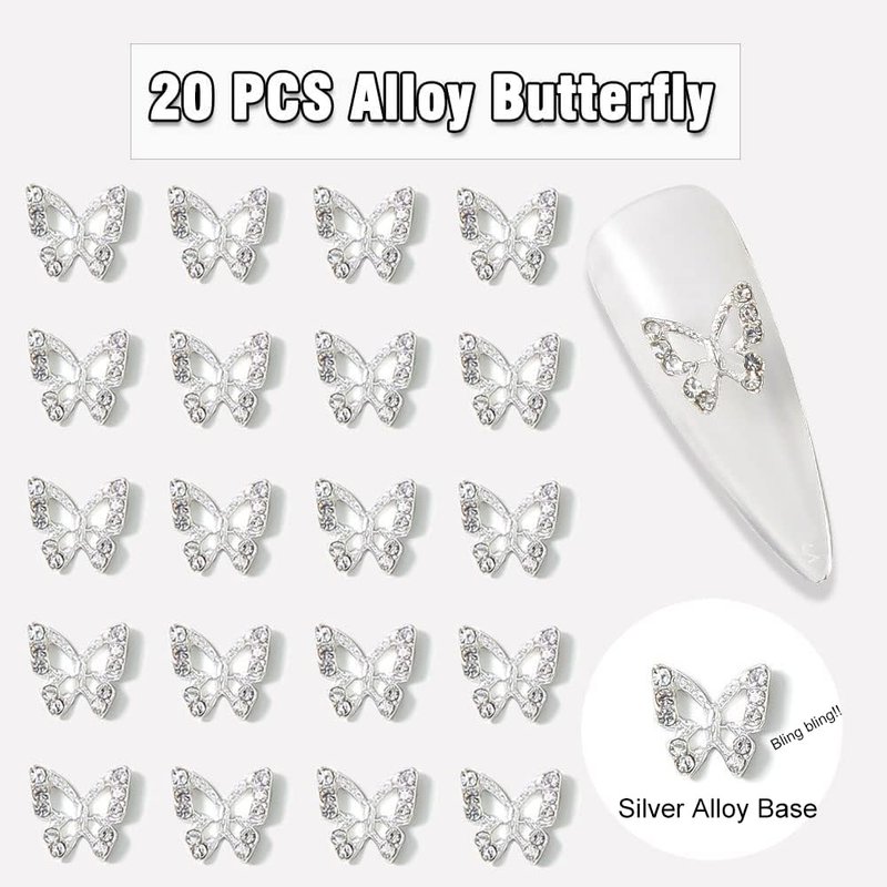 - 【Butterfly Nail Charms】 These kawaii nail charms are designed in the shape of hollow butterfly with silver alloy base, make you nails look more elegant and charming.