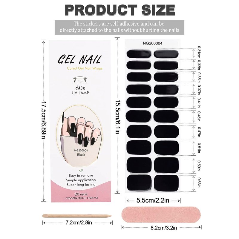 - Package Contents: 20pcs black gel nail polish strips stickers with 1 nail file, 1 nail stick, which make your nail art decoration more convenient.