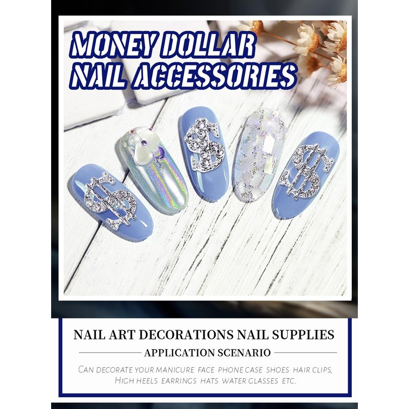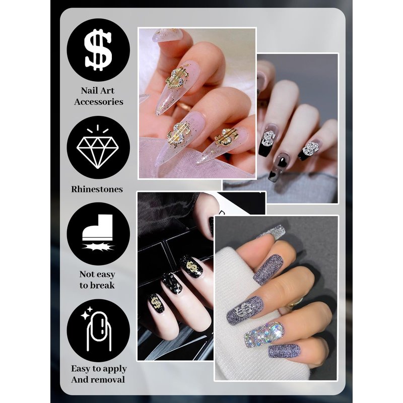 - 💰【Unique Design】These two styles nail charms feature a dollar sign design, plus the embellishment of silver rhinestones, making your nails look more delicate and dazzling.