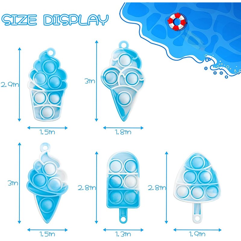 - 【Perfect Design】:These pop fidget toys are designed as 5 different types of ice cream, each style has 6 kinds of color.Mini ice cream element design, by pressing the toy to improve children's understanding of ice cream Festival.
