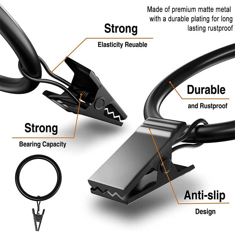 - GREAT MATERIAL - Premium 304 stainless steel, Stronger tension clip support heavier application. Each curtain ring can hold up to 3 pounds.