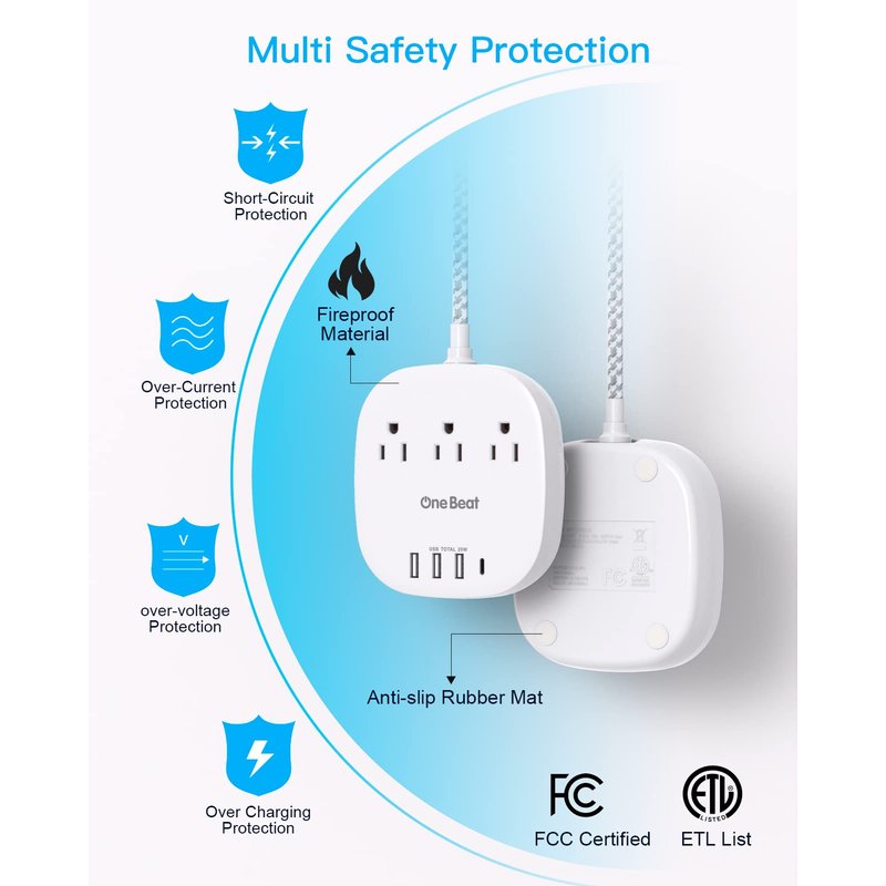 - 【Multi Safety Protection & Service Support】 - Our power strip are past ETL list, high-quality components, 1382℉ fireproof, the usb power strip can prevent your electric devices from over-current/over-charge/short circuit/over-heated. (One Beat provides, 12-month free worry. 24h customer service.)