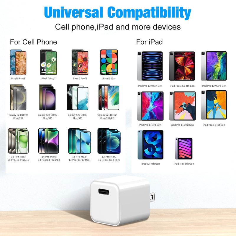 - 【Compatible Cell Phone Models】The usb c charger adapter supports 100-240V. Compatible with Android and iOS devices. Such as: Google Pixel 9 Pro XL/9 Pro/9/8 Pro/8/7/7 Pro/7/6 Pro/6/5/5a, Galaxy S24/S23/S22/S21, iphone 15/15 Pro/15 Pro Max/15 Plus. The type c charger block supports fast charging for devices with fast charging protocols around 20W
