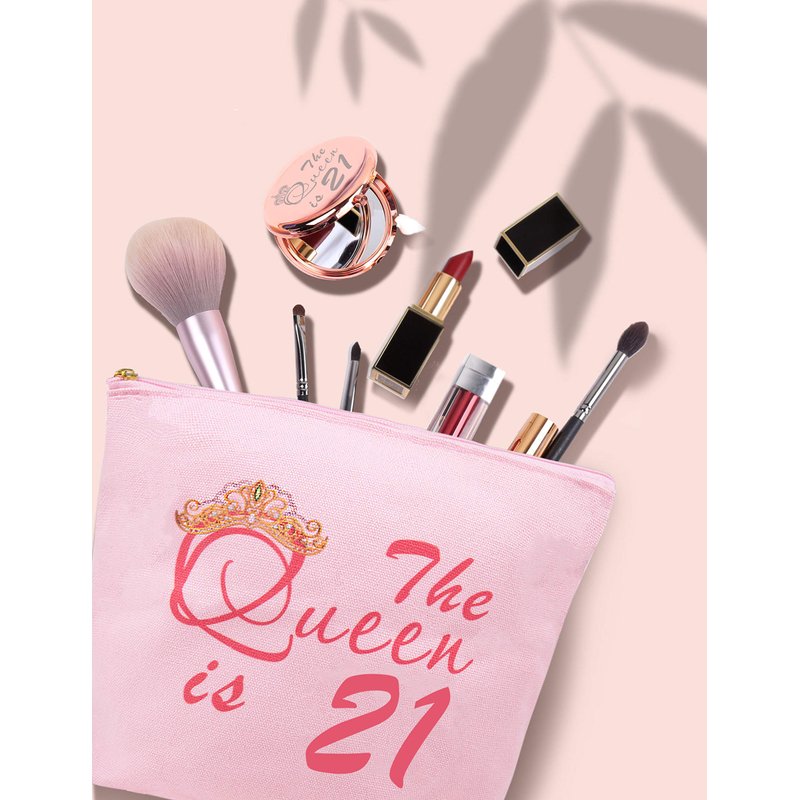 - 21st Birthday Makeup Bag: Our 21st Birthday Gifts set includes one 21st Birthday Makeup Mirror engraved with words “21th Happy Birthday”, one 21st Birthday Makeup Bag printed with words “The Queen is 21". This 21st Birthday Gifts for Her is the best 21st Birthday Gifts for Women. Our 21st Birthday Makeup Bag and 21st Birthday Makeup Mirror sure will make 21st birthday girl very happy.