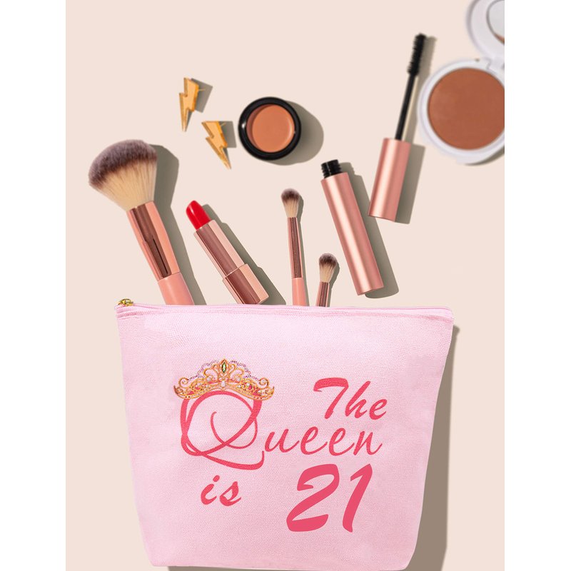 - 21st Birthday Gifts: This 21st Birthday Makeup Bag is double-sided printed with wordings "The Queen is 21”, and 21st Birthday Makeup Bag made with good canvas that has no peculiar smell. Our 21st Birthday Makeup Bag is also durable and not easy to fade.
