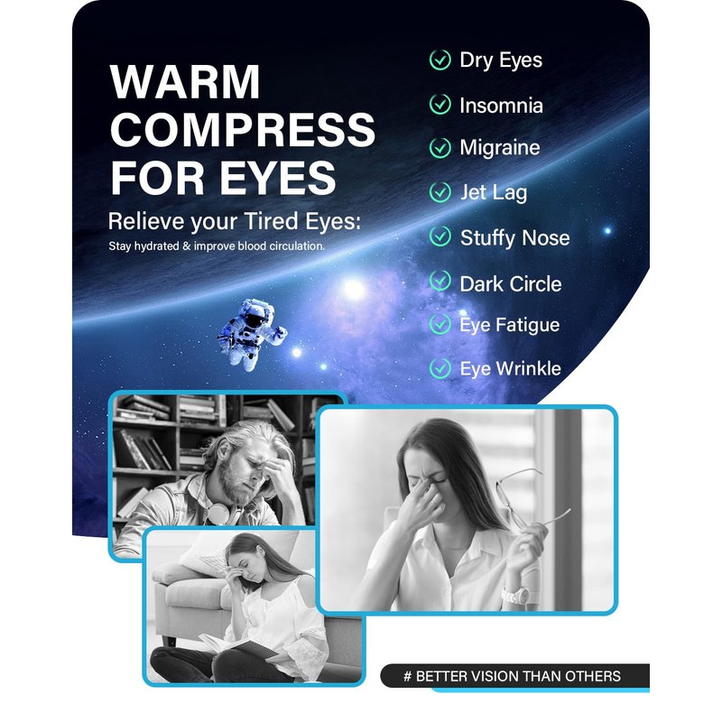 - ðãUpgraded Graphene Steam Eye MaskãOur heated eye mask is added with a graphene contact layer, which releases far-infrared microwaves during the hot compress, promotes blood circulation around the eyes. Steam Warm Eye Masks can relieve your eye fatigue,moisturize your eyes, improve your sleep quality, reduce dry puffy eyes and dark circles.