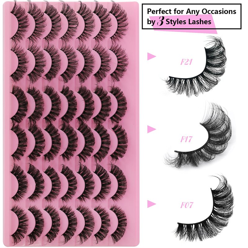 - Style: 21 Pairs-Strip Lashes-3Styles(F21+F17+F07)