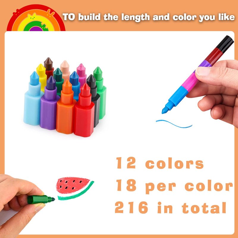 216 Counts Small Colorful Rainbow Stackable Crayons,Mini Crayon Bulk,Twistable Crayons for Kids,12 in 1 Stackable Crayons,Party Favors for Birthday Gifts,Goodie Bag Stuffers,Classroom Rewards(18PCS)