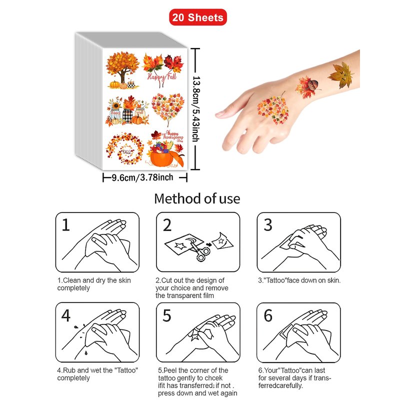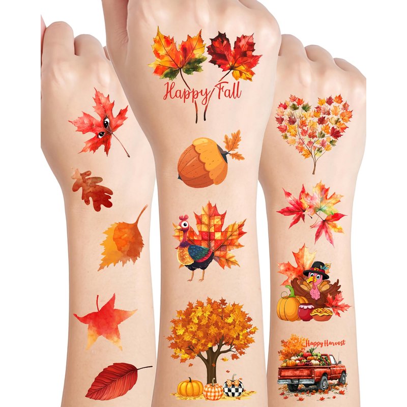- Friendly to Skin Fall Autumn party decorations,our temporary tattoos have been put through rigorous party testing and are 100% guaranteed to last all day,Non-toxic, harmless and tasteless, the tattoos do not cause irritation