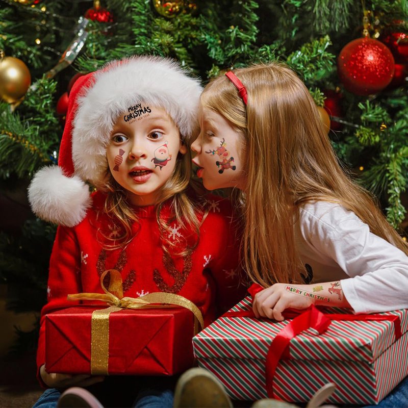 - Christmas Tattoos for Kids: These temporary tattoo are perfect as stocking stuffers for kids, Christmas tattoos temporary for kids, Christmas treats for kids, Christmas temporary tattoos, glitter tattoos for kids, kids tattoos. 20 Sheets various pattern Christmas tattoos, Santa, deer, snowman, penguin, Christmas tree and other elements. Suitable for Christmas party favors, goodie bag fillers, Christmas party favors for kids, glitter tattoos for kids.