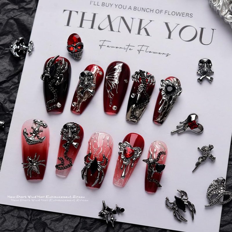 - 【Exquisite Design】Nail art charms are not only exquisite designed but also come in a variety of styles, containing nail art decorations with black and red gems, made of pure alloy, these fashionable and high-class elements make your nails more personalized and look even more glamorous at the Halloween party!