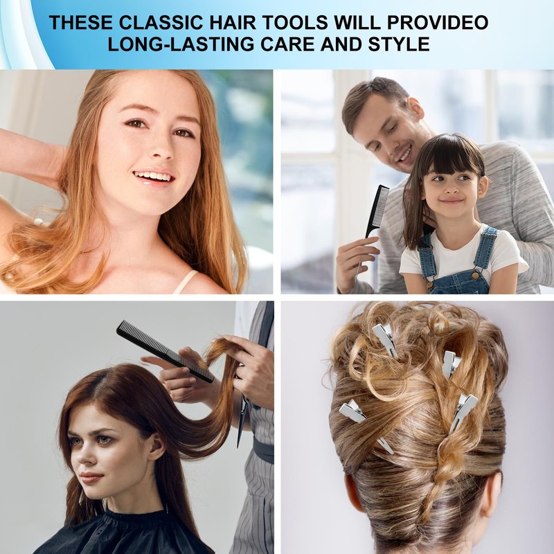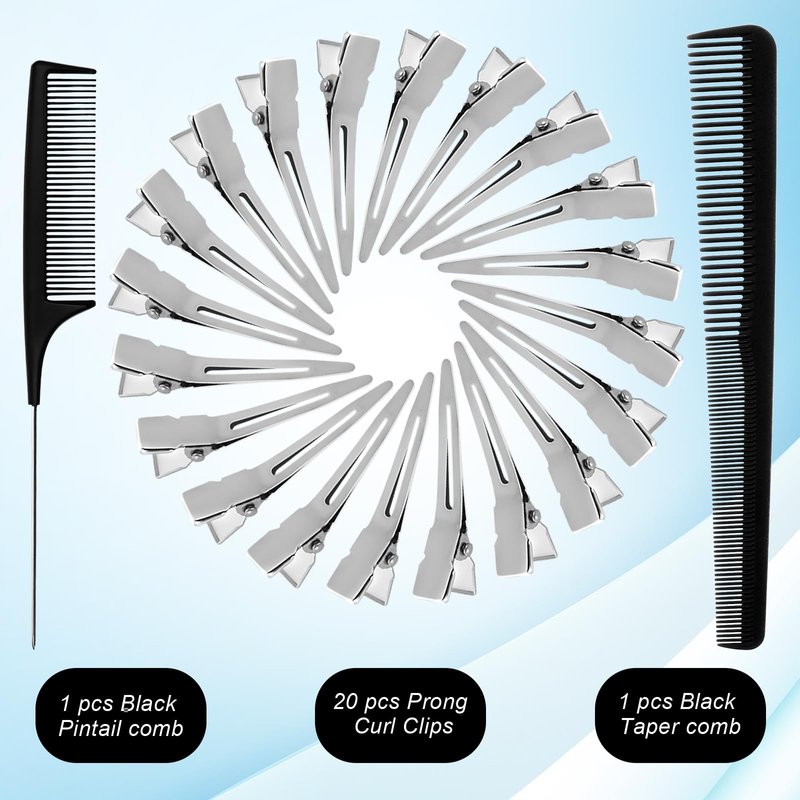 - Reliable Material: The double prong hair clips are made of electroplated metal, not easy to rust and durable, the surface of the tongs is smooth and won't damage the hair; combs are made of high quality carbon fiber, heat-resistant and anti-static, lightweight and sturdy.