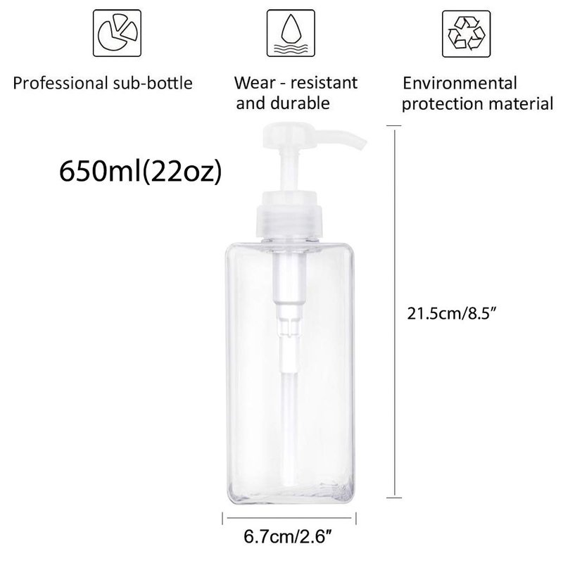 22oz / 650ml Empty Plastic Pump Bottles, Refillable Lotion Soap Dispenser Liquid Container for Kitchen or Bathroom Soaps Shampoo and Body Wash, 2 Pack Clear