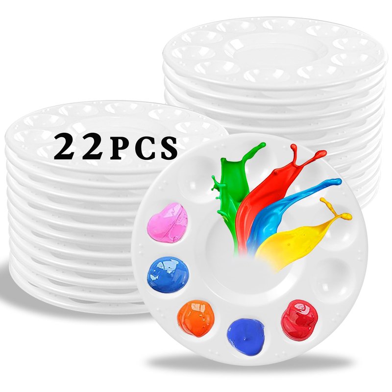 22pcs Paint Palettes, Plastic Paint Tray Palette, Paint Pallet for Adults & Kids, for Painting or DIY Craft Class, White