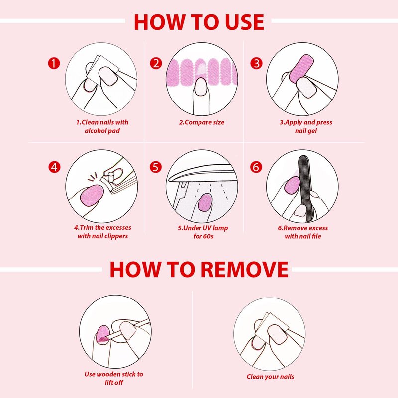 2. Features: semi-cured gel nail strips, waterproof, easy to put on, get a professional nail art effect in a short time.