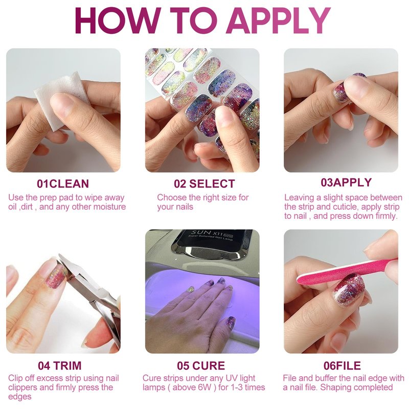 - 【Get Salon-Quality Nails In Minutes】: Enjoy the convenience of Gel Nails without the need for salon visits or expensive treatments. With our Gel nail strips, you can say goodbye to the hassle of fraditional nail polish. Simply stick on these high-quality nail wraps, and enjoy beautiful nail polish strips that last. These semi cured gel nail strips are easy to use, file, cure, and remove. Even beginners can get fabulous-looking nails in minutes!