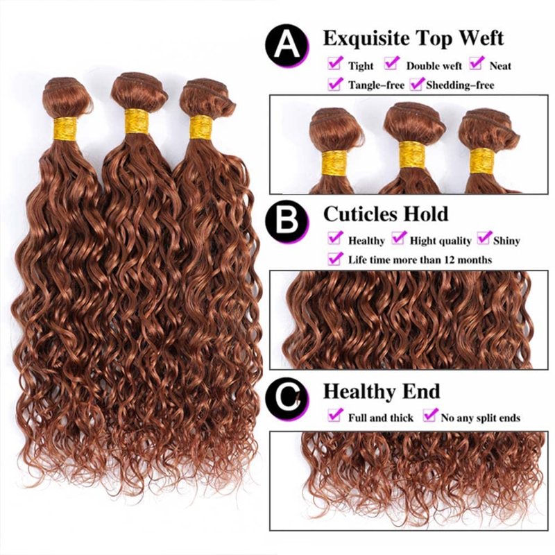 - 3.Hair Color:#30 Water Wave Bundles hair.