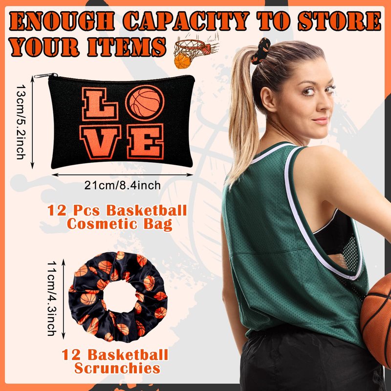 - Package Content: you will receive 12 makeup bags and 12 basketball scrunchies that come in basketball theme, there are enough quantities to meet your different daily use needs and replacement requirements, you could also share them with other people