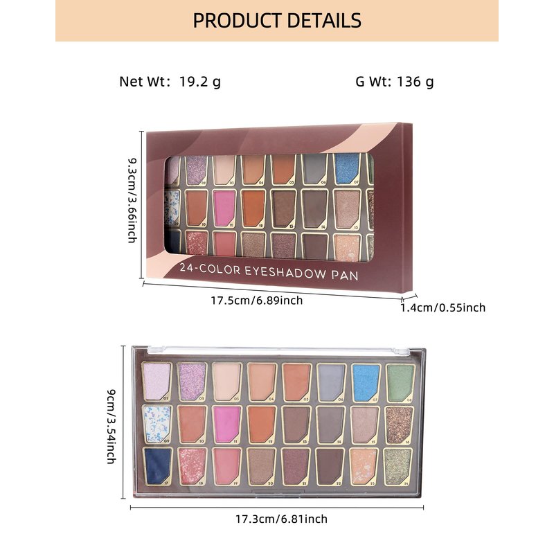Package List: 1 PCS 24 Colors Eyeshadow Palette