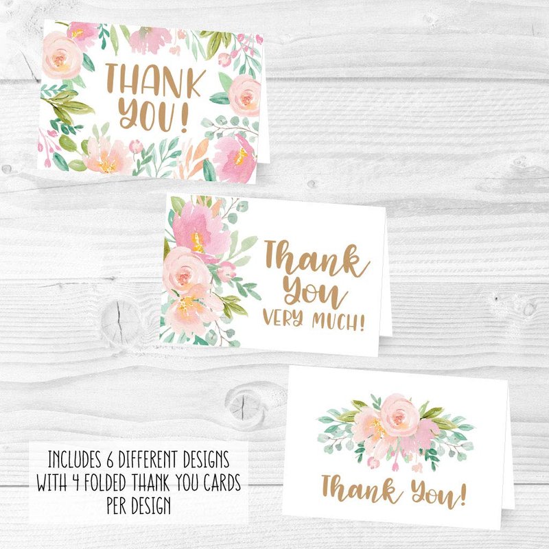 24 Floral Thank You Cards With Envelopes Bulk - Housewarming Thank You Cards Wedding Thank You Cards With Envelopes Kids, Baby Shower Thank You Cards Graduation Thank You Notes With Envelopes Set