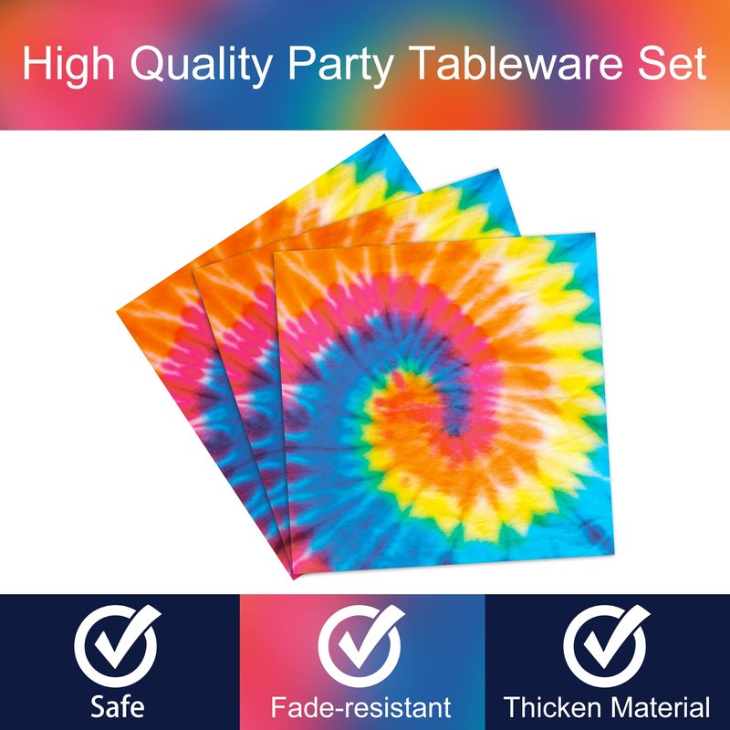 - Premium material: All of our Tie Dye theme plates and napkins are made of quality paper, no smell, heat-resistant and durable. The pattern and color are well-printed and fade-resistant to provide you with a party full of Tie Dye theme atmosphere.