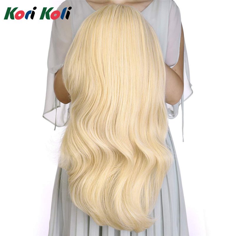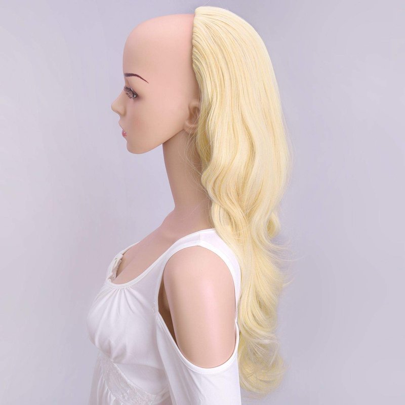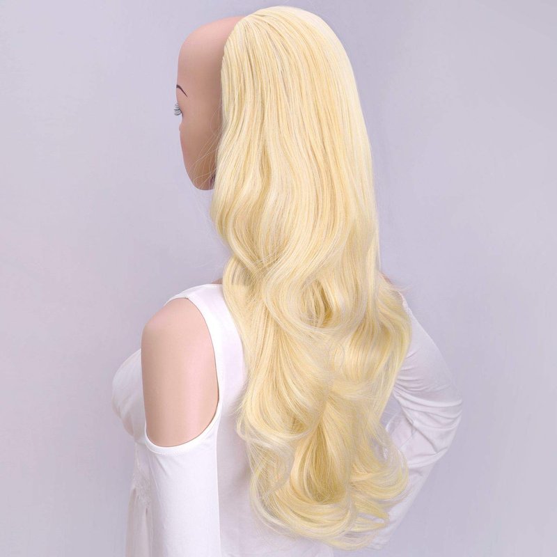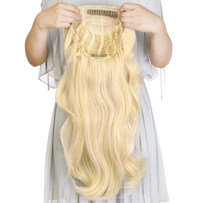 24" Long Wavy Clip in Half Head Tied Wig Blonde Premium Japanese Synthetic Kanekalon fibers Hair Extensions For Women 210g 8#