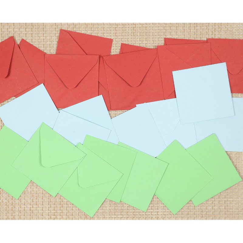 - Package: 24 Pack Mini Christmas Greeting Cards in Red/Green/Blue; 8 for each Color.