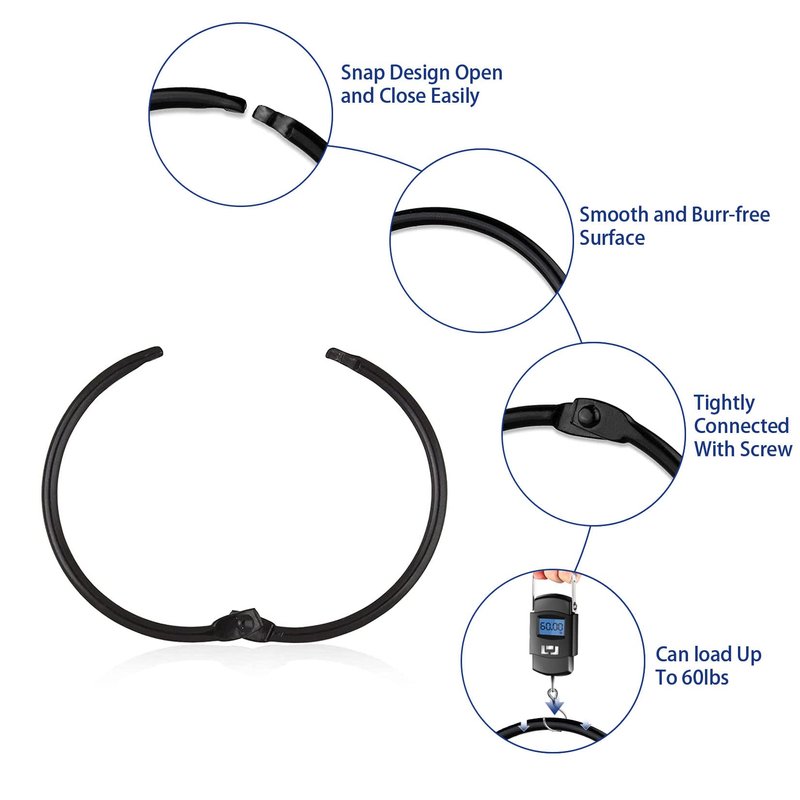 - 【Loop Closure Design】Simple snap closure makes black shower rings installation easy and fast. Without using too much force when closing, its clasp closure tightly enough to keep the shower curtain on the shower rod without falling off.