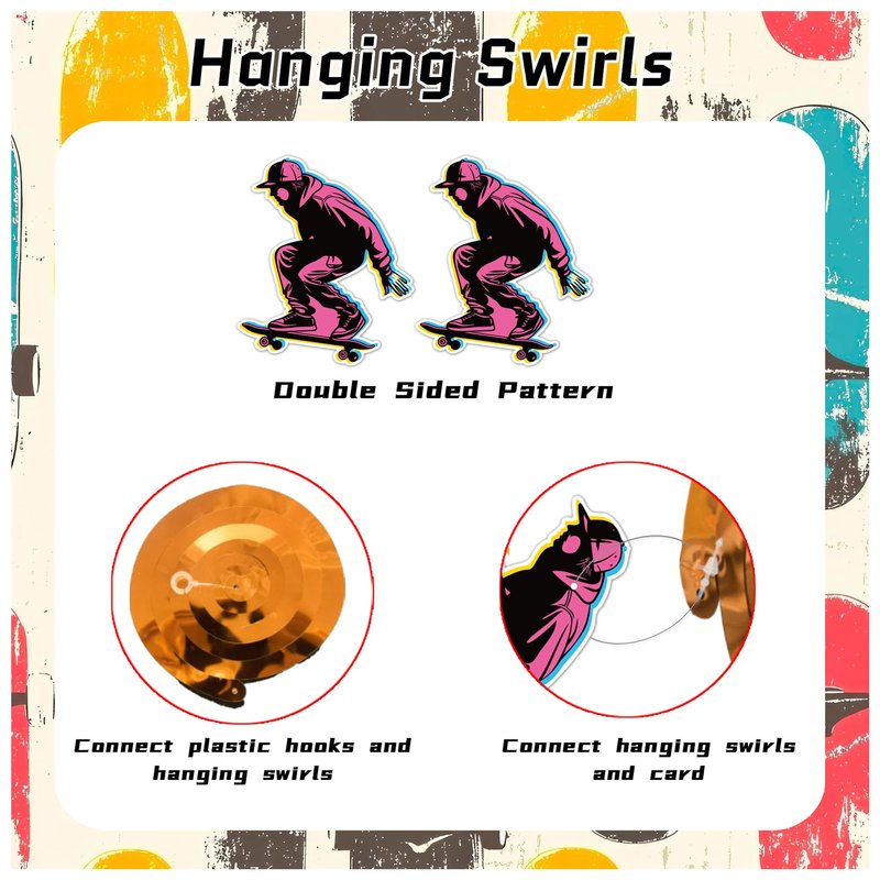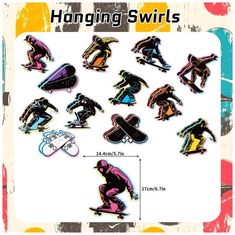 • Skateboard Birthday Party Decorations: Our package contains 24 pcs skateboard hanging cards and 24 pcs swirls