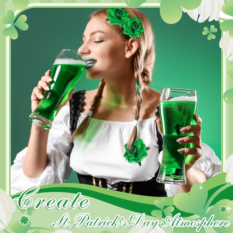 24 Pack St Patricks Day Hair Clip Rose Flower Hairpin Floral Brooch for Party Supplies Wedding Pack for Women Girls Rose Hair Accessories Boho Flower Pins(Green)
