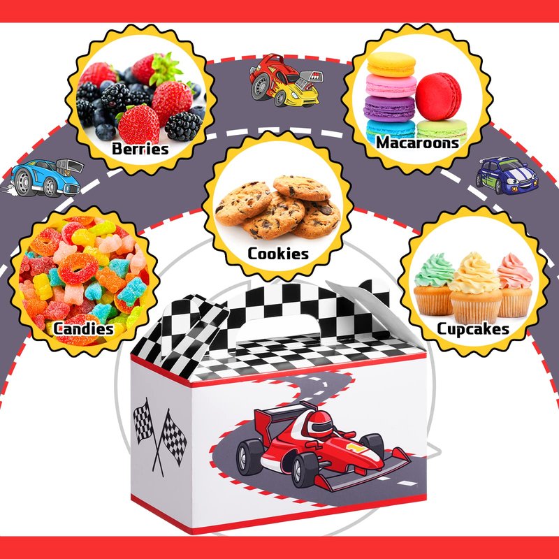 Racing candy boxes with handles can pack dessert, souvenirs as gifts for your friends at your party, and they will feel happy and excited to get them.