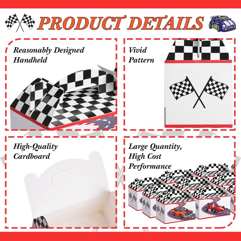 - Package Includes: you will receive 24 pieces of car treat boxes in 4 different styles, 6 for each style, with clear printing technology and fine workmanship, which are enough to satisfy your race party packaging needs