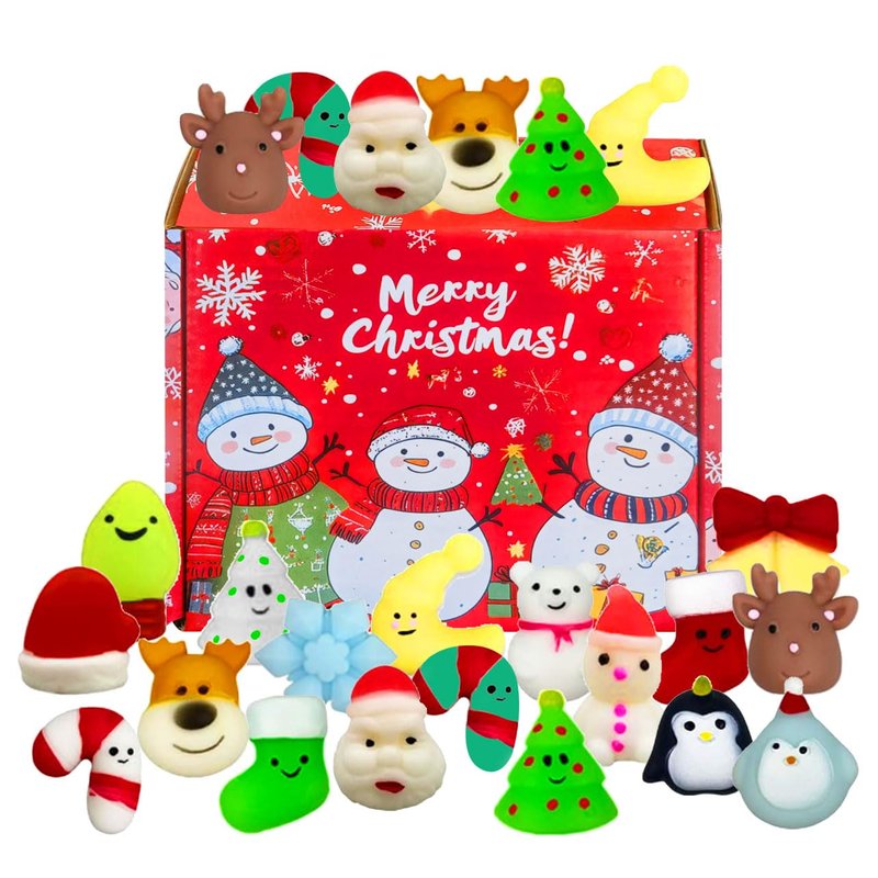 24 Pcs Christmas Mochi Squishy Toys,Mini Cute Squeeze Toy Stress Reliever Anxiety Packs for Kid Party Favors,Christmas Miniatures (Christmas)