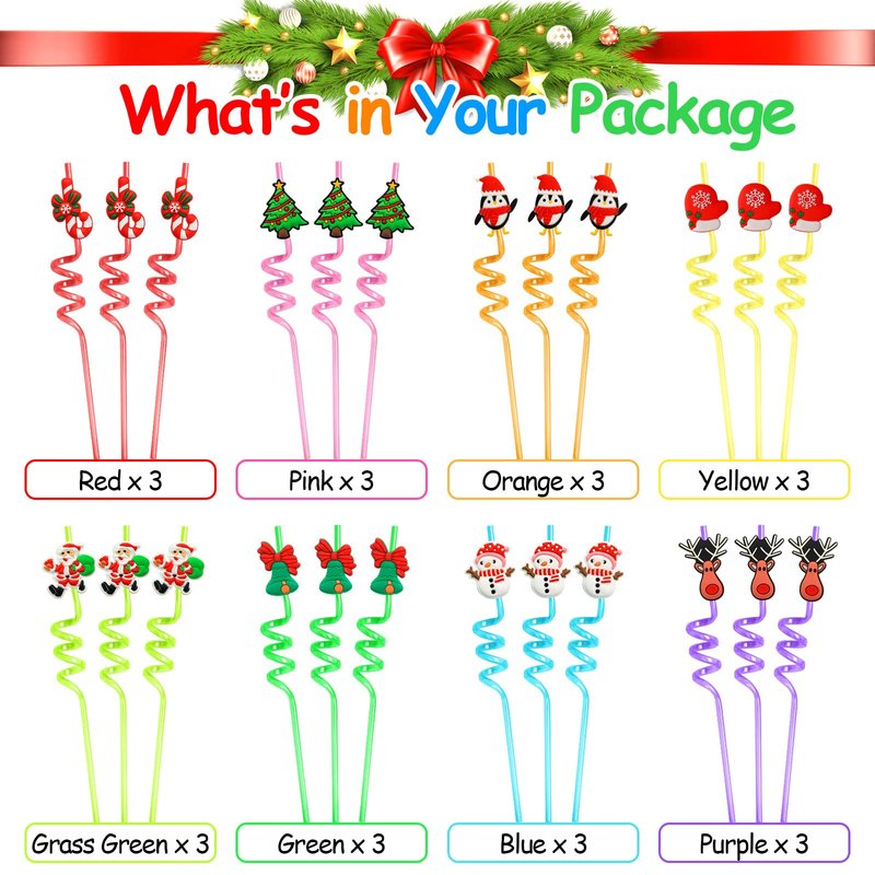 - GREAT CHOICE - You will receive 24 pieces of Christmas themed party straws in 8 patterns. Please check the package content when receive it. We'd like to provide every customer high quality party supplies as well as help, when you have any question about this Christmas drinking straw just feel free to contact us.