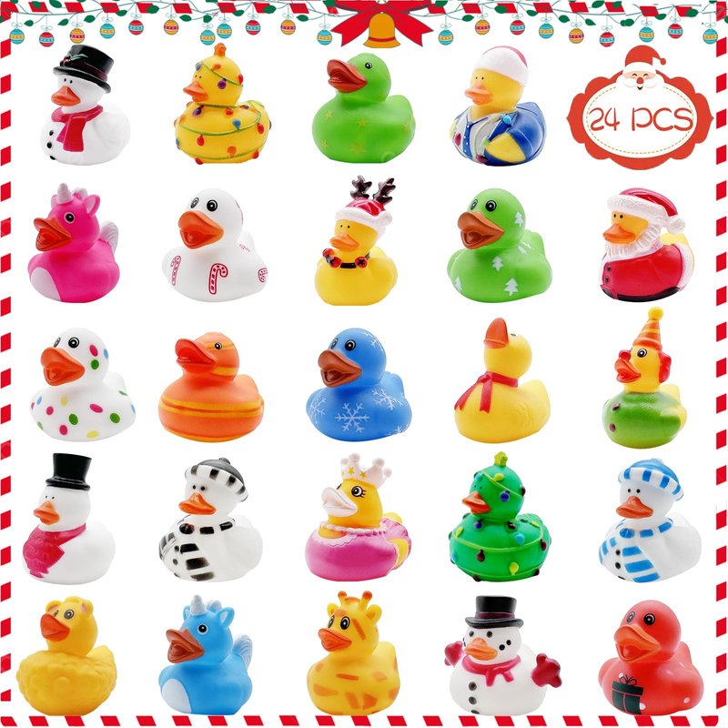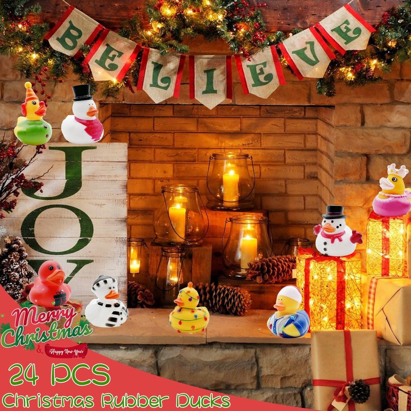 - 🦆【24PCS Christmas Rubber Ducks 】Our Christmas toys for toddlers comes with 24PCS Christmas different themed rubber duckies.The charming Christmas duck toy looks lively and cute.They will definitely add a Christmas atmosphere and warm fun to your Christmas party.