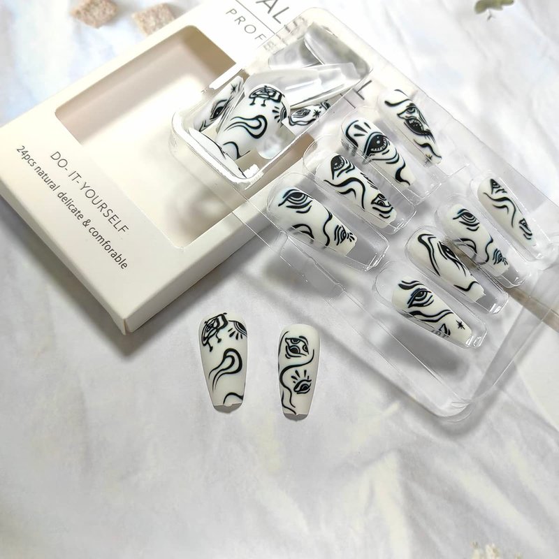 - 【Package Contents】24 Pcs Horror Eye False Nails +1 Nail File + 24 Pcs Jelly Glue Stickers+1 Alcohol Cotton+1 Wooden Stick.(Durability of jelly glue is not as good as liquid glue, but it makes fake nails reusable. Please use suitable glue according to different scenes)
