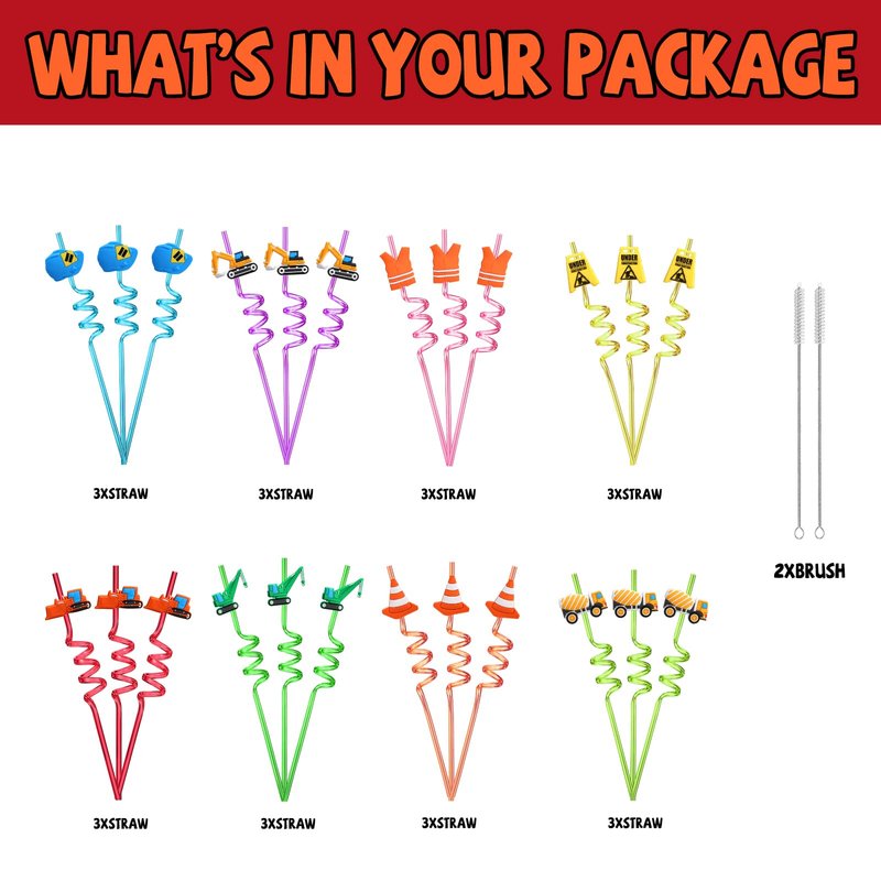 - GREAT CHOICE - You will receive 24 pieces of construction themed party straws in 8 patterns. Please check the package content when receive it. We'd like to provide every customer high quality party supplies as well as help, when you have any question about this construction drinking straw just feel free to contact us.