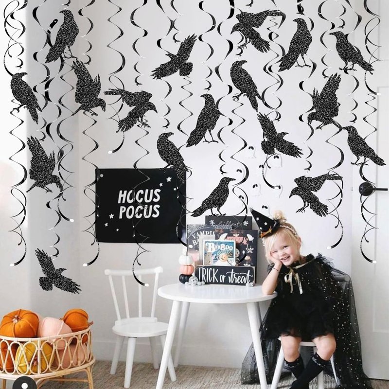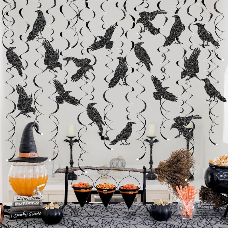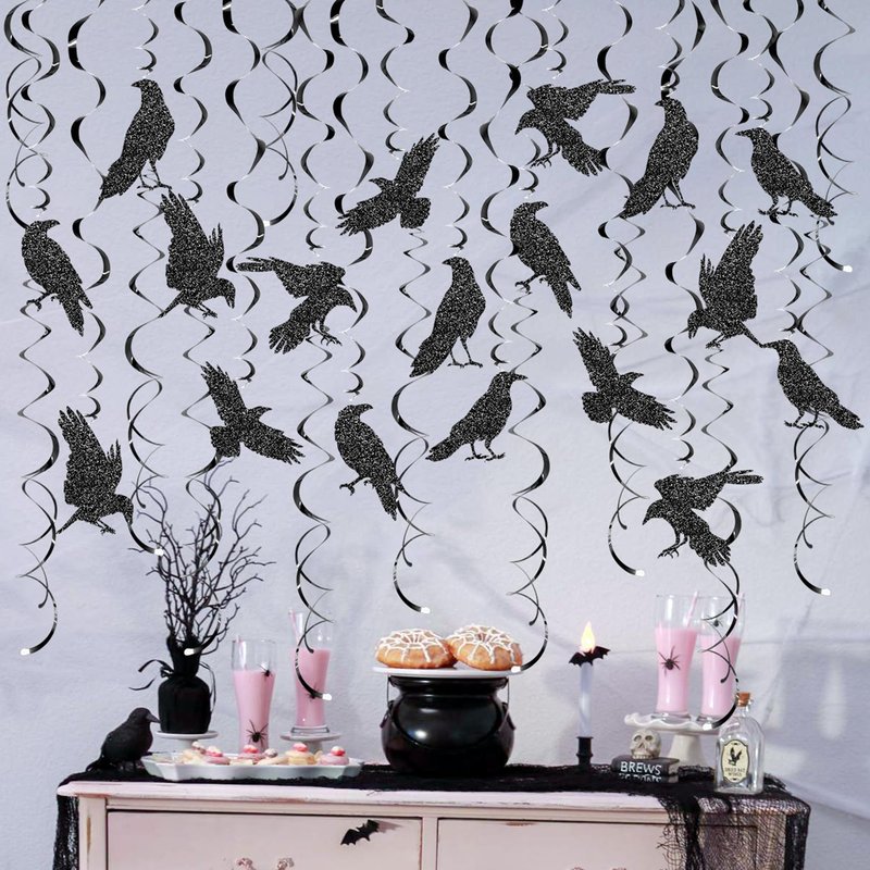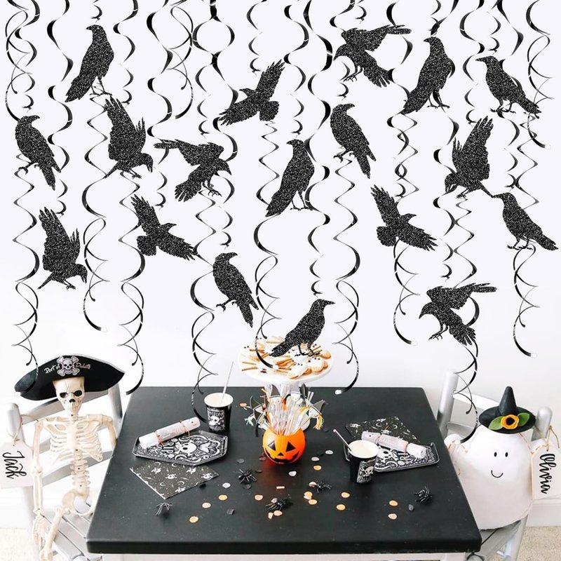 24 Pcs Crow Hanging Swirls Crow Ceiling Decorations Black Crow Party Decorations Crow Party Supplies for Crow Birthday Party Decorations Halloween Party Decorations