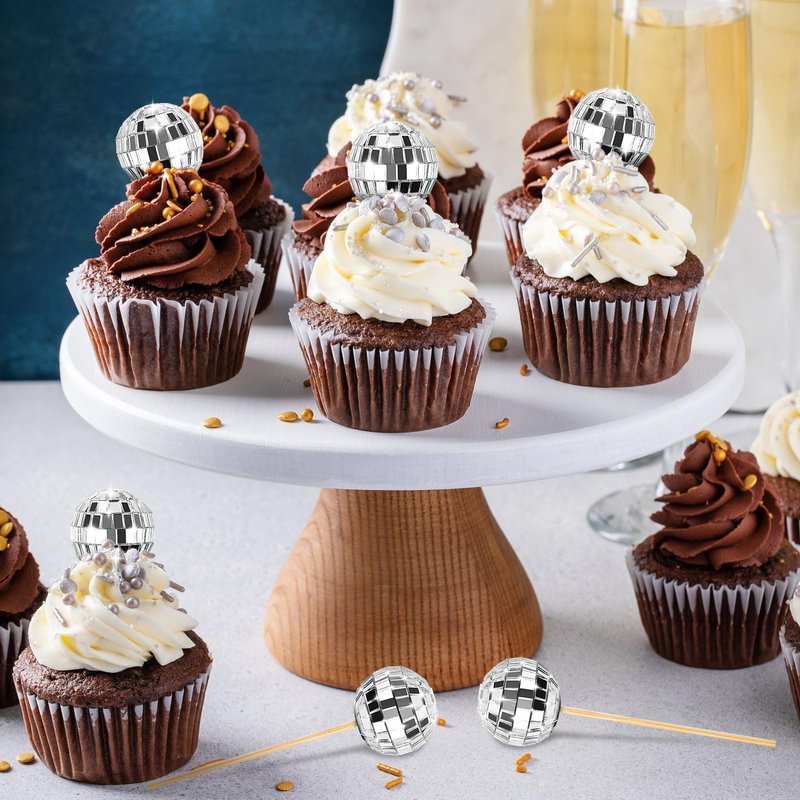 - Suitable Size:These disco ball decorations are 1.18inch and the sticks are 3.54 inch, suitable size for various cupcake, also suitable for large cake
